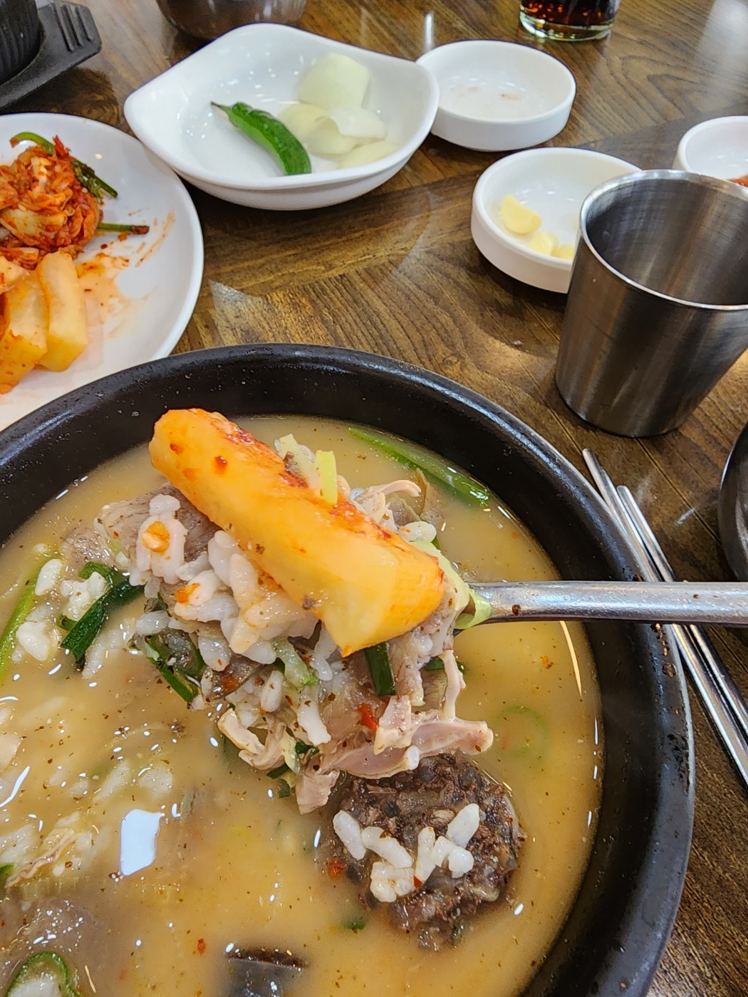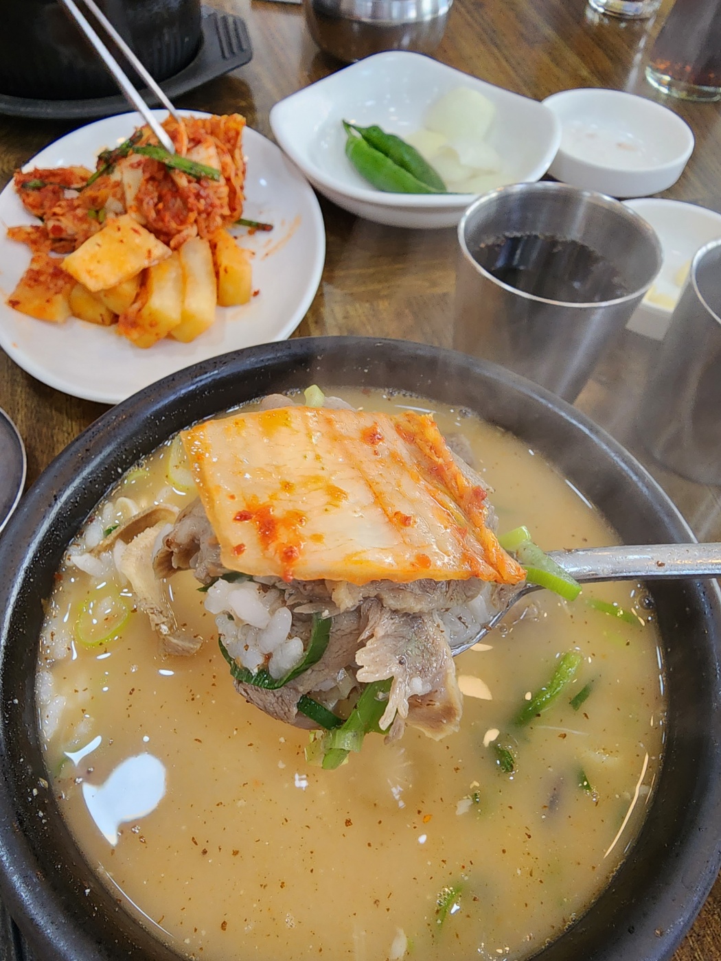 한 숟가락씩 김치 얹어 먹는데 몇 년 사이 먹어본 국밥 중에 젤 맛있는 것 같습니다.