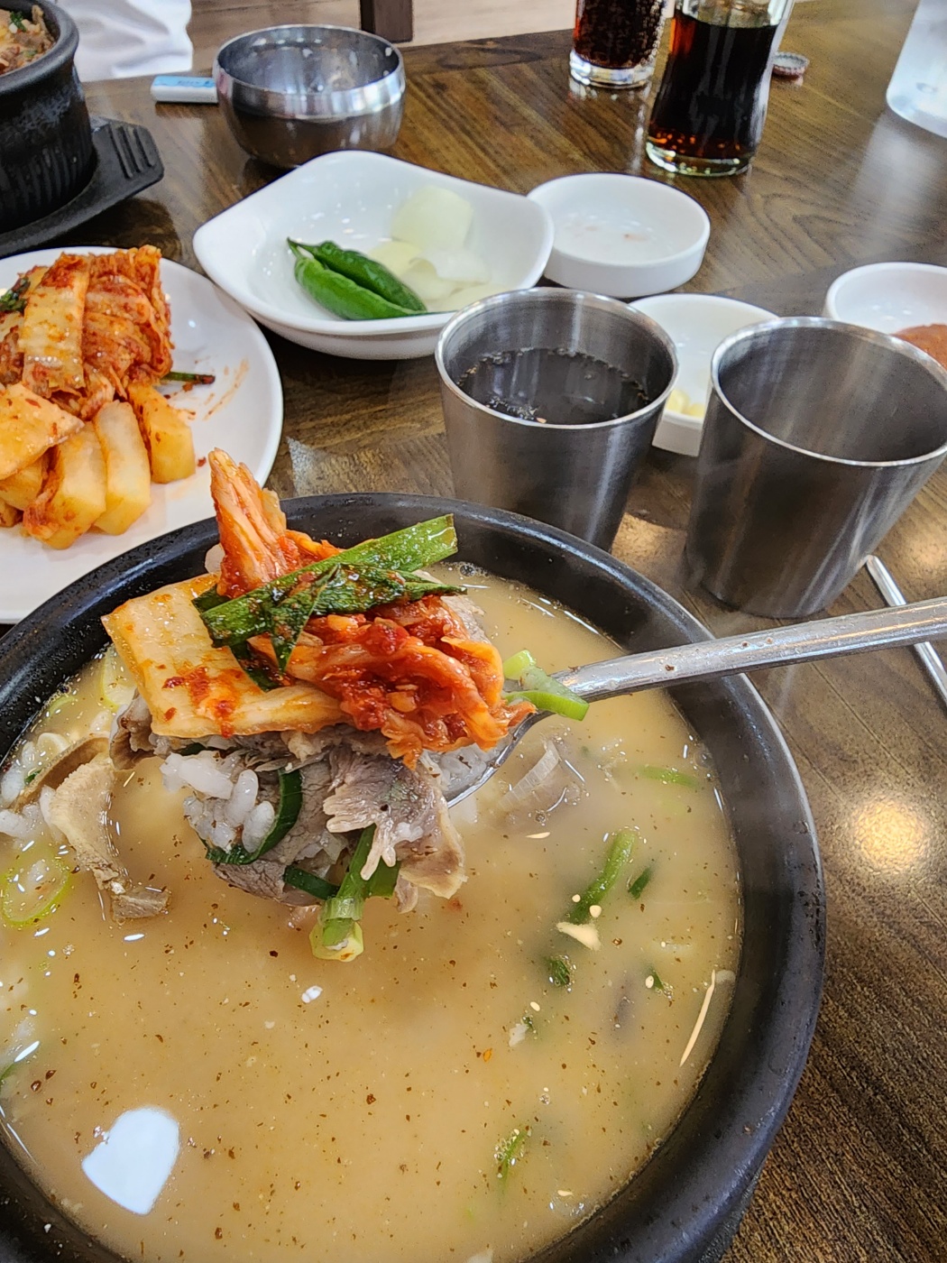 뜨거운 국밥을 한 숟가락마다 호호 불면서도 매콤아삭한 김치가 너무 맛있어서 김치 한 동이 다 비울 뻔 헸습니다. 오랜만에 맛있는 국밥먹으니 학교 간 아들이 생각나네요.