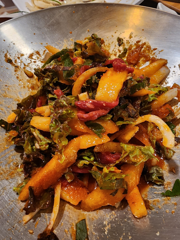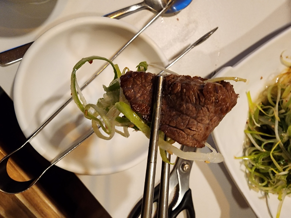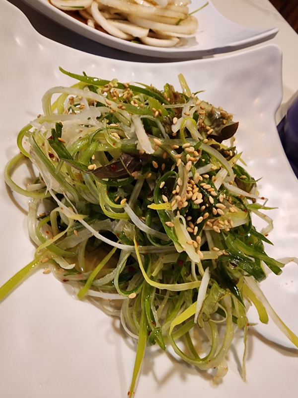 파채무침과 양파와 함께 먹는 한우는 입에서 살살 녹습니다.