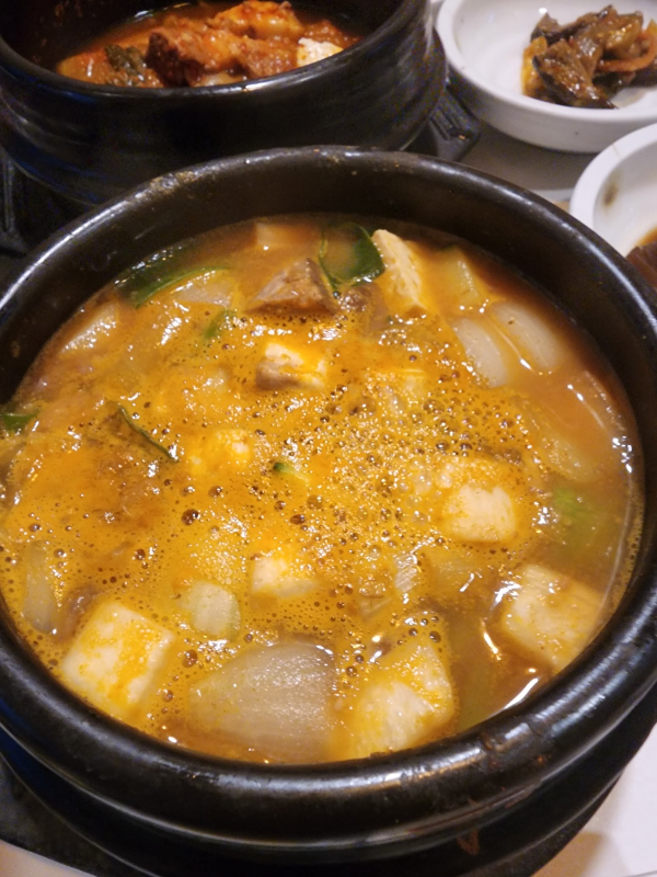 그래서 추가로 한우물회와 김치찌개와 된장찌개를 시킵니다. 하나 가격에 2가지 찌개가 나오는 것이 특이합니다.