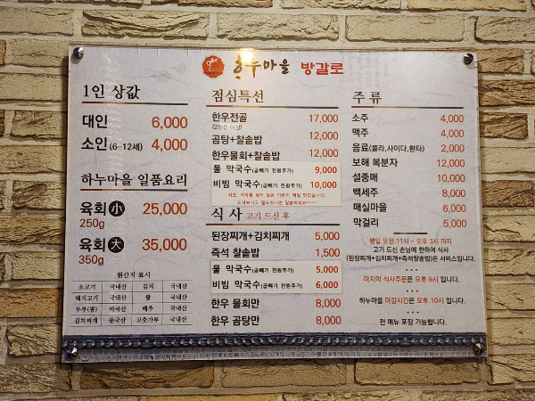 상차림이 다른 곳 보다는 저렴한 편인데 고기만 이용할 땐 2시간의 이용제한이 있습니다.
